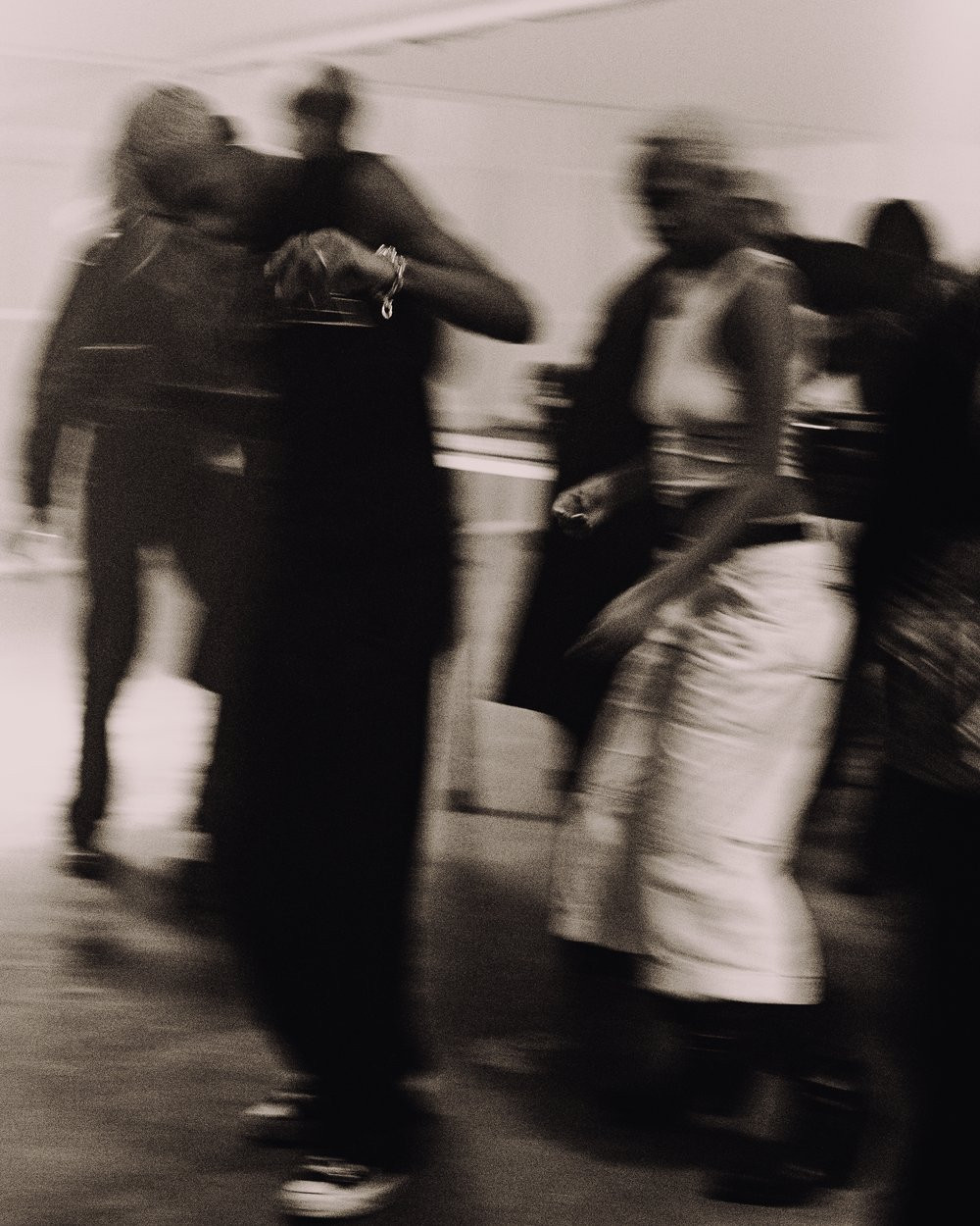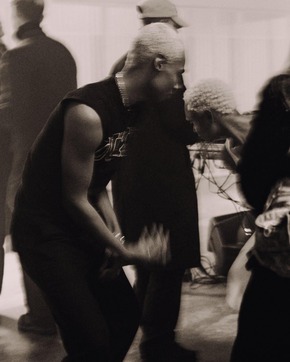 Mid-show, the audience becomes aware of a dancer inside through glimpses of a silhouette and the box becomes a stage for dancer William Darby to channel the frenetic energy of the collection.